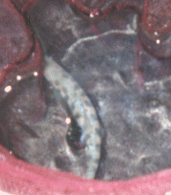 竿の中段に傷が入っていたのですが、10cm程度のアマゴを