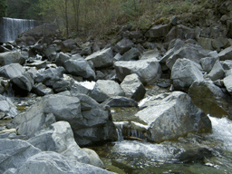 谷は護岸工事中で荒れていました。次に移動した谷も堰堤工事中で