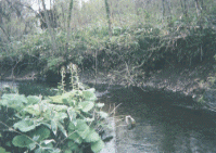 が蛇行するカーブ付近が僅かに水深が深くなるので、