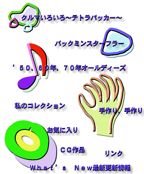 MAR/16/2002:くるまいろいろにお座敷カー準備中追加。 姉妹ページ 「クルマを肴に…ing」 作りました。 バックミンスターフラー展が原宿ワタリウムで開催されています。詳細はここへ。