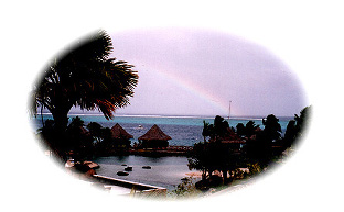 下はタヒチのホテルからムーレア島の方にかかる虹。