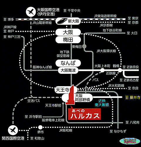 11) あべのハルカス・大阪阿部野橋駅の周辺地図 及びアクセス地図 パンフレット『あべのハルカス』(近鉄不動産株式会社 2016年) より 一部加工 |