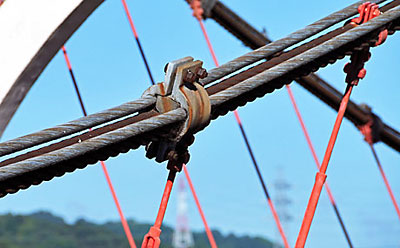 | C 吊りケーブル補強の様子 2013(平成25)年10月 2本の細いケーブルで補強されている。 |