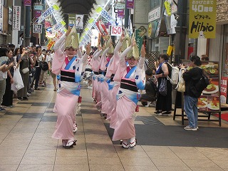 毎年恒例、天神橋筋商店街内と大阪天満宮境内で開催される「天神天満阿波おどり」が、昨日開催されました。 私は先頭の警備で、観客に道を広げてもらう役目。 なので、踊りを見ることがほどんどできないですね。 それでも、途中止まって「その場」での踊りも披露してくれますから、その時ばかりは警備不要なので、ちょこっと撮影できます。 徳島から本場の有名連である「徳島天水連」さんも来てくださって、大変に盛り上がりました。 |