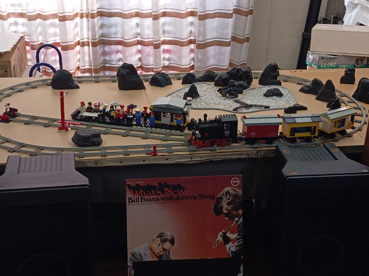 ☆40年前に息子と遊んだレゴを引っ張りだしてレイアウトを作って見た、バックの石は盆石