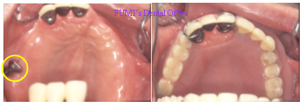 (左 : 金属の表面に歯の白い部分を足したもの、右 : 口の中に入ったところ)