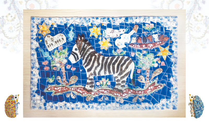 *船戸あやこは終日会場におり、モザイクタイル画3点、ハリネズミやライオンなど動物オブジェ数点、 大小各種アロマタイル数十点を展示販売予定です。 |