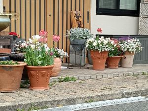 お客様で、ガーデニングがお好きな方がいらっしゃり、綺麗に咲いた花々が可愛らしく華やかです(^^♪