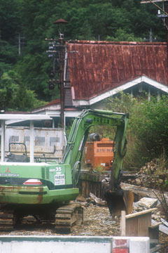 | ついに解体工事が始まりました。 重機が駅舎に向けて「進軍」していきます。 |