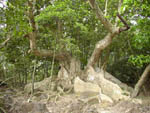 <<大スオウ>> 樹齢400年のスオウの大木根のヒダの大きさは、人の身長ほどもある |