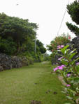 <<目抜き通り>> パナリ島の民家の間の道これが一番広い道。当然舗装なんてされてない 民家を囲む石垣と防風林が琉球らしさを感じさせる |