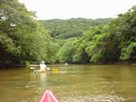 <<タンデム>> こういう二人の乗りのカヌーも有ります。二人の息が合ってないと、却って大変らしい。 パワーのある方が一人で漕いで、片方は楽するのってアリ? |