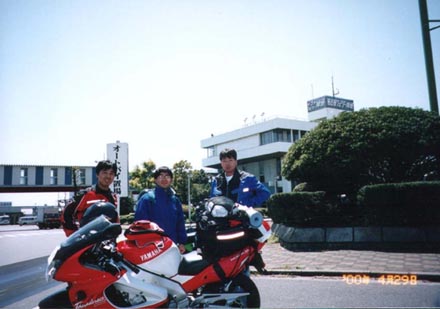 深夜0:00きっかり。実家を後にして東名横浜町田ICへ向かった。人通りの少なくなった夜の街をゆっくりと駆け抜ける。またまたいつもの事だが、出発が夜というのは良い。 旅への期待にはやる心が夜の静けさで適度に抑え込まれ、気分は急激にではなく徐々に秘やかに盛り上がってゆく。夜の闇に紛れて忙しない日常から抜け出し、見知らぬ地へと向かうその行為が何やら後ろめたささえ伴って旅人の心を高揚させる。そう、旅立ちだ! 横浜町田ICで東名高速道路に乗る。那覇行きのフェリーが名古屋港を出るのが11:00の予定。7:00頃までに名古屋埠頭に着いていれば大丈夫だろう。名古屋まで行くのに4時間もあれば十分だろうと考えているが、今回はかなり余裕を持って0:00出発とした。それと言うのも、去年の九州ツーリングの際、御殿場−沼津間が事故により通行止めになってしまった為に足柄SAで足止めをくらい、折角夜中に出発したのが無駄になった経験があるからだ。去年のように自走で目的地に行くなら遅れても問題ないが、今回はフェリーに乗るので時間に余裕を持った。だが無用な心配だったようだ。今夜の東名は車も少なく、流れは至ってスムーズだ。むしろ寒さの方が問題だった。箱根の山に入る頃、寒くて体が固くなる。この辺りは高速コーナーが連続しThundeAceにとっては非常においしいシチュエーションなのだが、上半身が固まってお地蔵さん状態なのでリヤのトラクションがかからずペースが落ちる。Tシャツの上にトレーナーとスリーシーズンジャケットでは、全然寒さを防げない。沖縄ツーリングなので、防寒対策というものを完全に忘れていた。仕方ない、ここは常夏の沖縄に想いを馳せながらひたすら我慢。箱根の山を越えれば少しはマシになるだろう。 と考えていたら甘かった(*_*) 山越えしても寒いまんまで、特に浜名湖辺りが厳しかった。こう寒いとペースは落ちるし、トイレは近くなるのでSA毎に止まって体を温める為に休憩するので時間が掛かる。当初、名古屋まで3時間ぐらいと考えていたのが、結局名古屋に到着したのが6:00ちょっと前。5時間以上掛かってしまった。 名古屋ICを降りた所でまた問題発生。ツーリングマップル中部遍を持ってくるのを忘れていたのだ。埠頭への道が判らない……。 信号待ちの間に思案した結果、とりあえず自分の位置を把握する事にする。幸い名古屋駅方面という看板が目に入ったので、看板通りに名古屋駅へ行きそこを起点とする事にした。それから駅前のコンビニに飛び込み地図検索をする。名古屋駅から埠頭へ向かう通りの名称と交差点の名称を覚え、埠頭を目指す。おっと朝食のパンとお茶を買うのを忘れずに。コンビニって便利だね。<--地図買えよ フェリー埠頭に着いたのが7:30頃。流石にまだ受付も開いてないし、乗客の姿も見えない。一番乗りであった。受付開始は9:00頃だろうと思うので、ちょっと近くをうろついてみる。適当に道を走っていると、看板の「熱田神宮」という文字が目に入る。速攻で神宮にお参りする事に決定。30分後には神宮の境内にいました。 念の為に書いておくが、オイラは尊皇主義という訳ではありません。ただ、寺や神社といった所の雰囲気が好きなのである。だがしかし、願掛けに弱いオイラはしっかりお参りもするのであった。<--交通安全を祈願する所じゃないって 今回の旅の無事を祈り、フェリー埠頭に戻ったときは9:00ちょっと過ぎ。丁度良い時間だ。受付も開いていたし、バイク置き場にもオイラと同じ沖縄ツーリングと思われるバイクが数台止まっていた。しかし、肝心のフェリーが見あたらない。どういう事じゃ? 受付で訊いてみると、フェリーの入港が遅れているとの事。沖の天候は良くないらしい。因みに今日の名古屋の天気は、ピーカンの快晴。オイラの南国旅立ちを祝福するかの如き真っ青な空がどこまでも続いている。暑くてトレーナーなんか着てらんないくらい。まぁ、入港の遅れは1時間程だという事なので、ここは焦らずにのんびりと構えている事にする。 待っている間、バイク置き場にて他のバイク乗りと話をする。その時知り合ったのがこの二人。静岡から来たアフリカツインの高田さんと、長野から来たKDX125SRの清水さん。 高田さんは沖縄には何回か行った事があるそうで、沖縄の事に詳しく離島へ方法など色々教えてもらう。 清水さんはオイラと同じく、沖縄初体験。高速に乗れないので、夜中に松本からひたすら山道を走って名古屋に来たそうだ。やっぱり寒かったらしい。ところでこの清水さん、実はビューエルも持っているそうでKDXはセカンドバイクとして衝動買いしたそうな。ビューエル持ってるとは、相当な好き者ですな(フフ