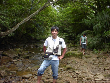 初心者のオイラが遅かったので少し時間が掛かったが、お昼ちょっと過ぎぐらいには仲間川源流に着いた。チョロチョロと流れる渓流のような所なのでカヌーは降りて歩いて行く事になる。ある程度沢を登ったところ、仲間川の源流地点で昼食をとった。昼食後、ジャングルの中で川の音を聞きながらのんびりする時間がイイ。川の水は当然の如く綺麗で、うまい。ここより上に人工物はないから天然のままである。混じりものが有るとすれば、西表ヤマネコの小便ぐらいというガイドさんの冗談で皆笑う。 記念撮影をした後、戻る事にした。