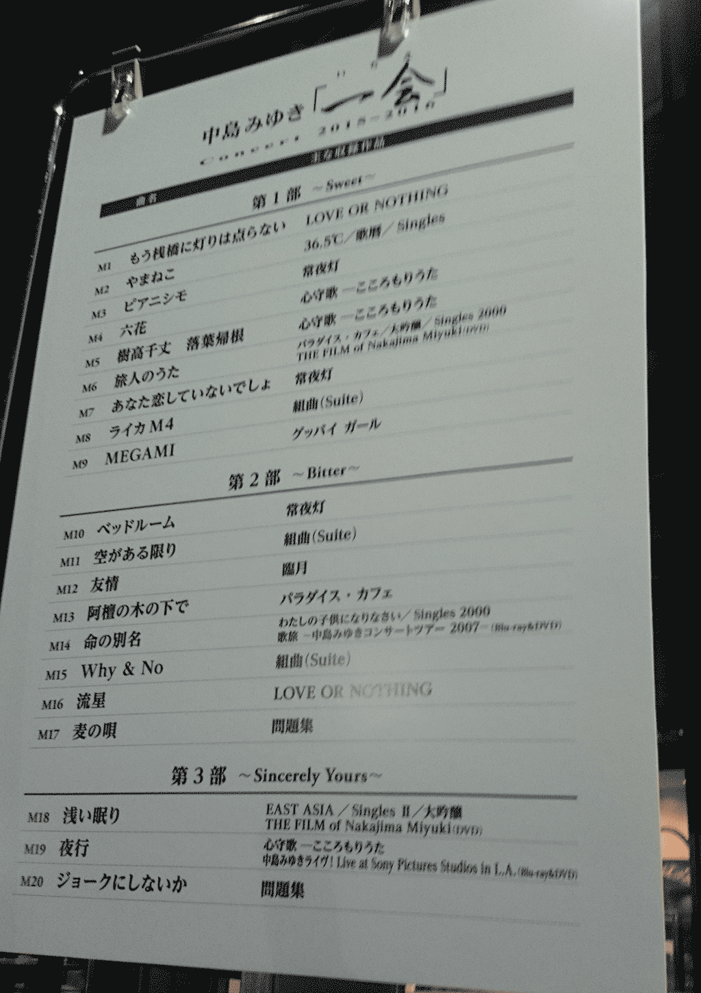 みゆきさんのコンサート「一会」の感想書きます。ネタバレですので、ご容赦を。初日に行くことができたのです。