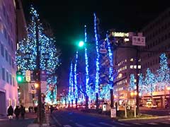 御堂筋は相変わらずの蒼い龍が天に昇るようなイルミネーションでした。