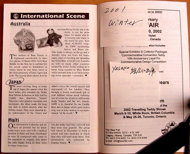 Winter 2001 winter 2001c トラベリングベア優ちゃん米国訪問中 CBDJの月例ベアメイキングについて 高島屋の趣味の会展示即売会に参加 本部から活動を評価される |
