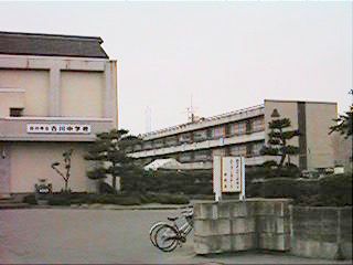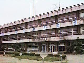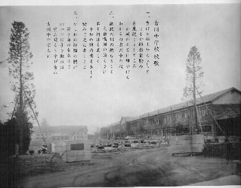 いわゆる男校舎です。昔は着物ですから,配慮していたんですね。男尊女卑なんていうけど,どうしてどうして,ちゃんと考えていたんですよ。右の写真は第一小学校の新校舎です。昔ここには立派な講堂が建っていました。学芸会や卒業式はそこでやったもんです。
