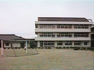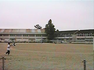 左手奥の建物は小学校の体育館です。右手に見えるのは当時の新校舎今では一番古い校舎となってます。右の写真の三階建ての建物は特別教室で,左手に少し写っているのは部室です。かつての体育館の面影などすっかりなくなってます。