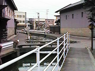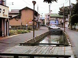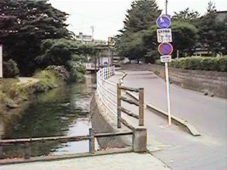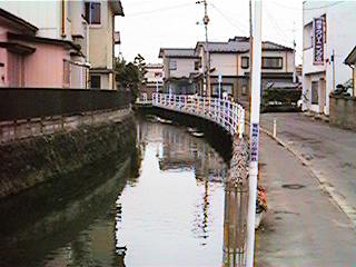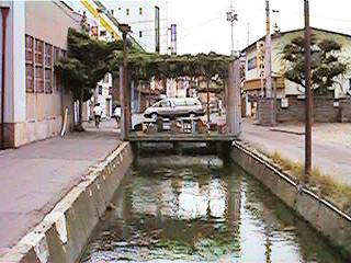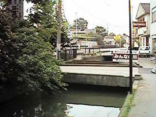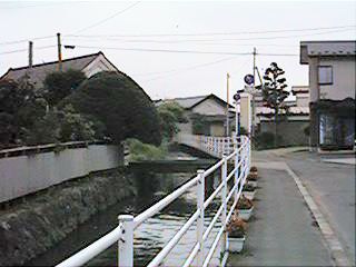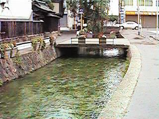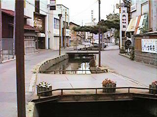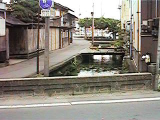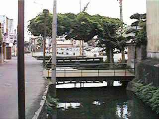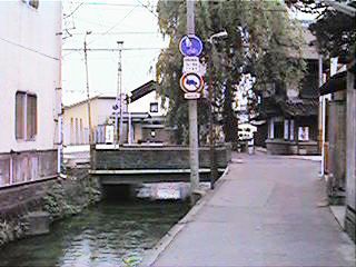 古中から北を見ます。緒絶川はここから上流へ続きます。ただし,通常街の人が緒絶川と呼ぶ場合,この辺からです。右の写真は古中前の橋から南へ続きます。今回は金毘羅様まで,通常緒絶川と呼ばれる範囲までの映像です。