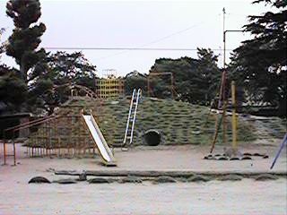 正面から新校舎を。中央に見えるの象徴だった大イチョウです。昭和54年の大風で一度は折れてしまったのですが,ここまでまた大きく育ってます。こちらは築山です。昔は当然ありませんでした。