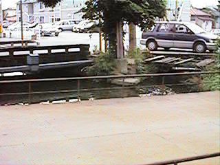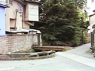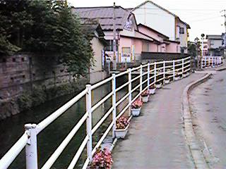 ここから緒絶川は二つに分かれます。しかし,みんなが緒絶川という場合,直進し,右へ行くと荒川と呼ばれるようになります。右の写真奥の橋から灯篭を流すのです。また,その昔花火大会でロケット花火などを打ち出すのもここがスタートでした。