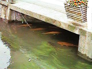 これまたおいしそうな鯉です。本当に大きいです。これで体長七〜八十センチはあるでしょうか? 大きいですよ。本当に。さて,緒絶川の終点です。