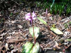 2006年4月20日 小さな先住者 庭をいじりすぎて いつも当たり前のように咲いていたカタクリも 去年はあまり見かけなかった このままなくなってしまうのかと心配してたら ちゃんと出てきてくれた たった一つの花しかついてないけど たった2枚の葉しかついてないけど 降り積もった枯れ葉の中から すっくと立ち上がる ここはわたしの場所 他のものに邪魔させないで そう訴えているような小さな姿 ごめんね こうやって何十年もここに咲いてきたのに 他のどんな花よりも先に住んでたのにね |