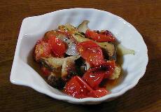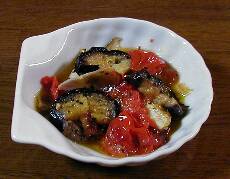 【作りかた】 1.多めのオリーブオイルでにんにくを炒め、取り出す。 2.そのフライパンでナスを炒め、取り出す。 3.さらに鶏肉をいためる。 4.それらを耐熱皿に移し、ミニトマトを並べ、ピザチーズをかけて、バターをちぎって散らす。 5.230度〜250度のオーブンで、チーズが溶けて焦げ目がつくまで焼く。 |