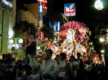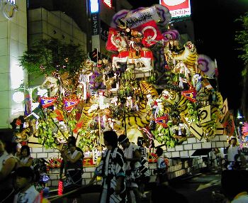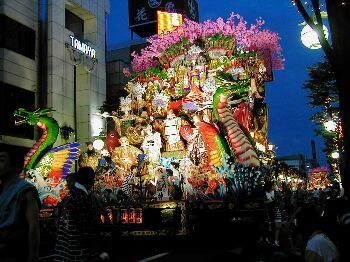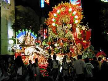 ライトアップされた山車が幻想的で昼間の山車とはまた違った美しさ。