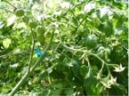 <芽かき> ずんずん大きくなって、もう天井に届きそう。 余分なわき芽をかいて、 無駄に広がらないようにします。 成長過程で、5回ほど行ないます。 |