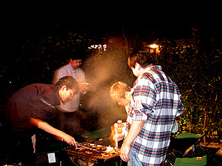 夕食の屋外バーベキュ-