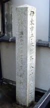 慶応3年11月18日(1867)夜、醒ケ井通の近藤勇の妾宅で歓待された伊東甲子太郎は、酩酊して帰営中、妾宅から目と鼻の先の木津屋橋近くで、待ち伏せの新選組隊士数名に襲われた。物陰から突然、槍で刺された伊東は、深手のまま、刀を抜いて応戦し、一名を斬捨てると油小路通りへ逃れたものの、北に数メートル行った本光寺門前の門派石に腰を降ろし絶命した。新選組は伊東の亡骸を駕籠に乗せ油小路七条の辻に放置した。 |
