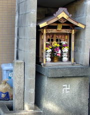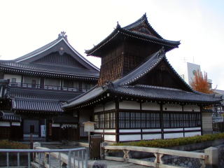 | 島原大門を抜け、花屋町通りを東に進むと大宮通りに出る。その向こうに、大きな塀に囲まれているのが「西本願寺」である。大宮通りを渡り、塀に沿って堀川通りに出ると右側に「太鼓楼」が見える。 | |||