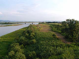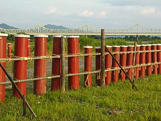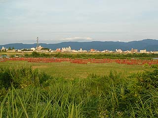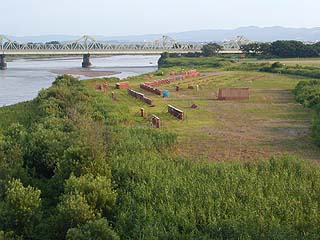 | 花火の準備中か・・・ 奥の橋も、当日は仕掛け花火の ナイヤガラに利用されます 橋の全長は1キロぐらいあったんだっけ? |