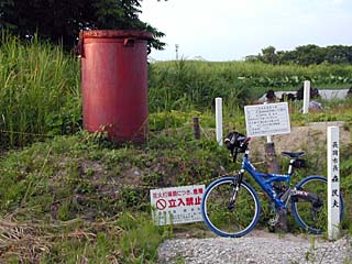 これは別の場所にある 三尺玉の打ち上げようの筒 相当埋め込まれているな 青色のちゃりはサイズ比較のためね |