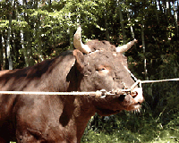 闘いを止めるには、足に紐を付けて動きを鈍くしてから鼻を掴んでおとなしくさせます