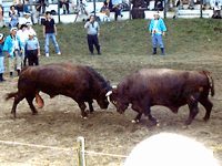 山古志村で行われている闘牛大会です(牛の角突とも言う)