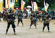 よくみると使ってる火縄銃はみんなばらばらなんですね。中には銃身の長いものや口径がかなり大きい火縄銃もありました。