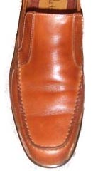 爪先にU字のアッパーがついたタイプ。 ややカジュアルな雰囲気。スリーピースなどにあわせるのは本来不似合い。 トゥの切り替え部(モカ縫い部)に立て線が入っているタイプと入っていないタイプがある。 このモカ縫い部が立っているほうがカジュアル度が高く、寝ている(爪先から遠い)方がオンビジネスには向く (LOAK) |