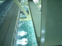 明石海峡大橋には舞子海上プロムナードという橋上の施設がある。エレベーターで8F、海上47メートルまで上がると遊歩道と喫茶ルームがある。