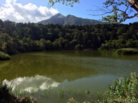 「姫沼」からの利尻山。 姫沼はその昔、ヒメマスを養殖しかけた人造の沼