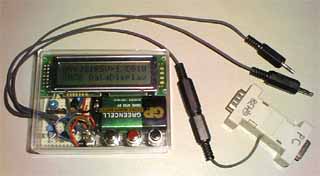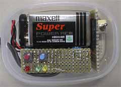 eTrexには立派な液晶表示器があるので、わざわざキャラクタ・タイプのLCDを付ける必要はありません。と、いうわけで、3号機を改造して、液晶無しモデルを作ってみました。秋月のAKI-PIC超小型マイコンボード(PIC16F628)を使用しています。回路は、4号機からLCDを抜いただけですが、動作確認用にLEDを付加しています。データ入力はeTrex用(2.5φステレオジャック)、トランシーバはケンウッド用です。プログラムも4号機と共通です。