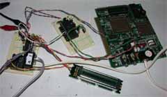 いつものごとく、構想2年、製作3日です(笑) NCUには100円で買ったジャンクモデムカードを使い、モデムLSIはジャンク箱に転がっていたパケット用モデムLSI、CPUはお得意のPIC16F628です。セレクタ用リレー類も、モデムカードがら外して使います(笑) 全部、手持ちのあり合わせ部品で組み立ててみました。