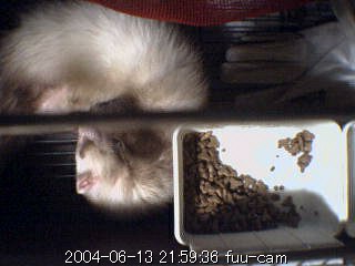 2005年に向けてのフェレット用カメラシステムは、なんとも安直な、市販webカメラです(^^;) ちょっとデキの悪いカメラですが、イージーに使えるのは魅力です。と、いうことで、フェレットは市販品に任せて、2005年はセキュリティ用、多ポイント同時監視にトライする予定です。