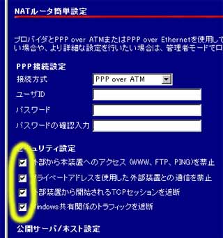 | 2002.5.10 バージョンアップ ファームウエアがアップデートされたそうなので、早速DLして試してみました。今回の改善点は、TE4121Cの下にぶら下がっているパソコンに、ADSL側と同じグローバルIPをDHCPで割り当てられる機能です。ルーターを越えられないネットワーク系アプリケーションが使えるようになります。特定のMACアドレスを持つパソコンだけ、グローバルIPと同じアドレスを割り当てる機能もあるので、普段のWeb用と、実験用の2台のパソコンを同時に動かして試すことができるの、結構便利です。ただし、当然ながら、グローバルIPを貰ったパソコンは、他のパソコンと違うセグメントに置かれてしまうので、そのままでは他のパソコンと通信ができません。逆に言えば、セキュリティが上がって良いかもしれません。 |