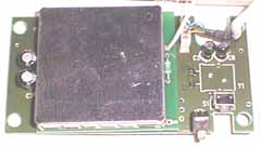 下の写真は、送信部の中身です。やはり高周波ユニットはシールドケースの中に入っています。LEDが2個ついていて、1つは電波を受信したとき点灯します。もう1つは、点灯したとこを見たことがありませんがなんなんでしょうね(笑)