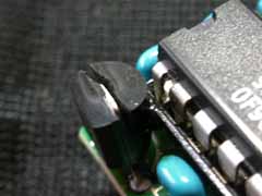 | まず、後ろのハンダ付けを外す この線は基板に繋がっている |