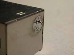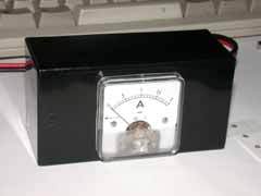 | フューズを取り外し、1.1A用ポリスイッチ(切断2.2A)を、1個こだけ入れました。フューズボックスの部分が空っぽになるので、裏側にDCメータ(2A)を付けてみました。メータは新品ながら10年来の余り物です(^^;) ホールソーで穴開けしてのですが、0.4mmほど小さく開けてしまい、削るのが大変でした(^^;) 自作のPICなどの装置が4個ぶらさがっているのですが、消費電流が少なく、全然メーターが振れません。ちょっとつまらないかな・・・ |