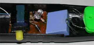 中の様子、2本の角はLED 基板部は3層構造に見えるが 一番下はケースの一部 |